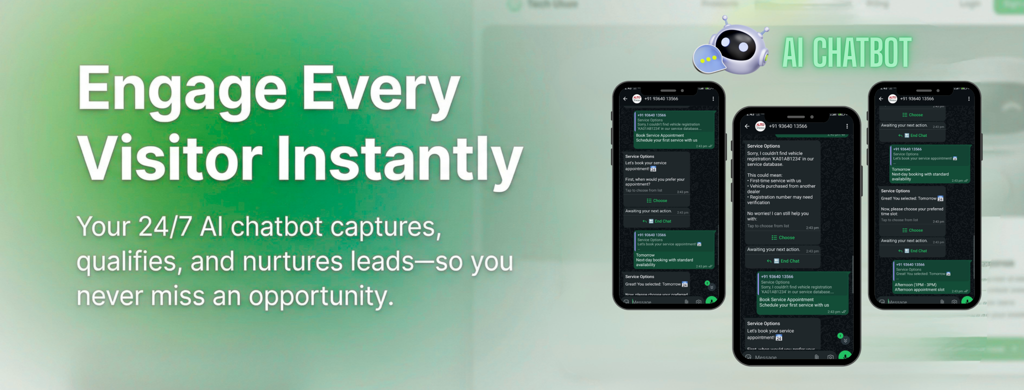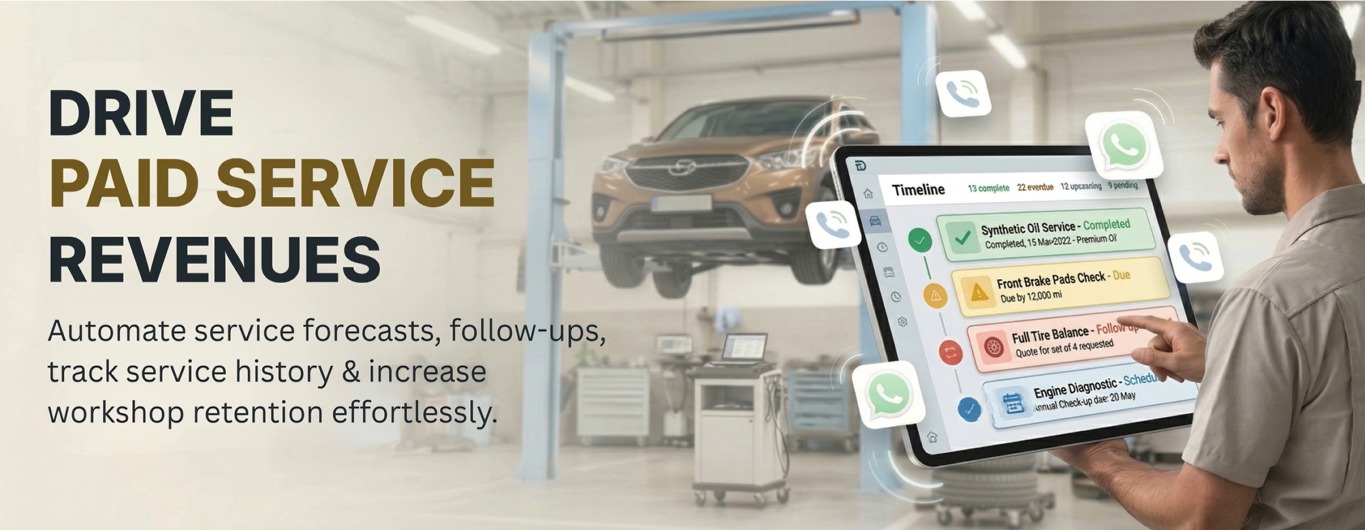 Call customer with 1-Click from 360° Customer Profile on AUTOSherpa. Send SMS & Email. Customized WhatsApp messages in Hindi, English or any regional language.
