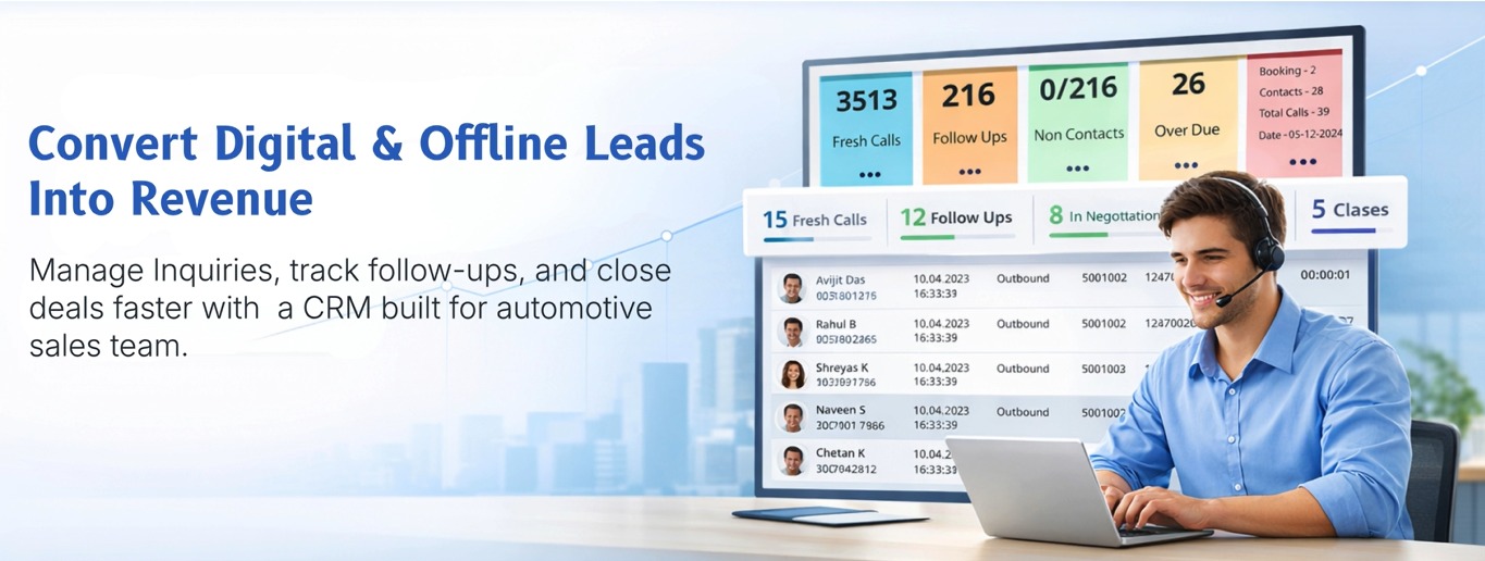 Tele-callers get leads on Web CRM Interface. Sales Executives & Service Advisors get the data on Mobile CRM app.